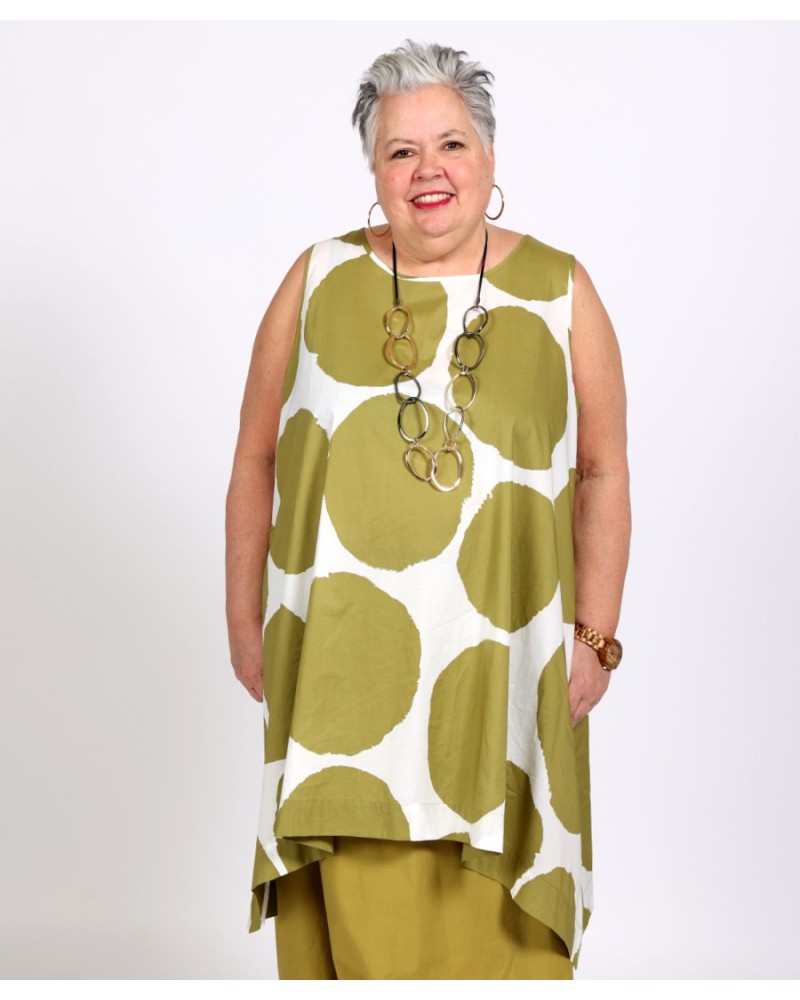 Long flowy sleeveless tunic Matcha Green and White – Tirelli