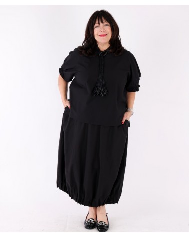 Flowy elastic waist skirt with relaxed fit black – Tirelli