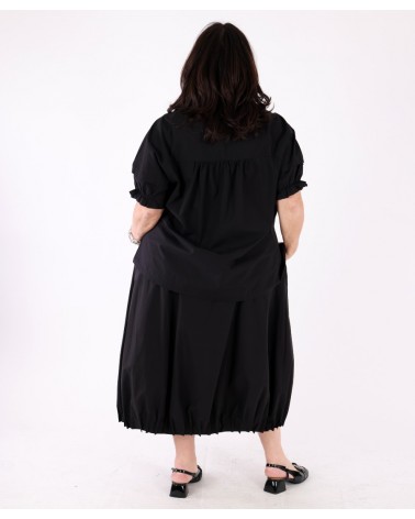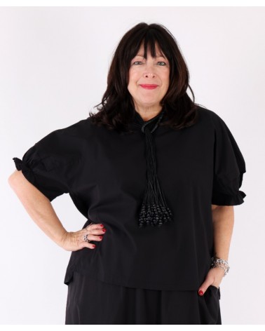 Chic relaxed top with gathered sleeves Black – Tirelli
