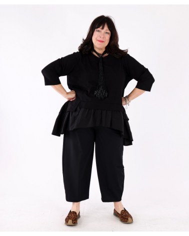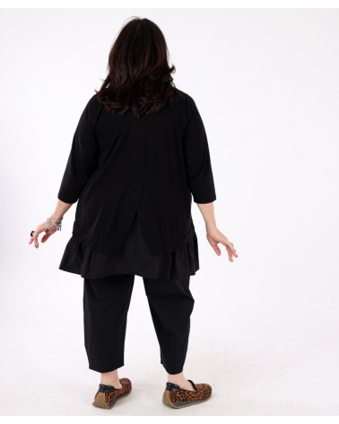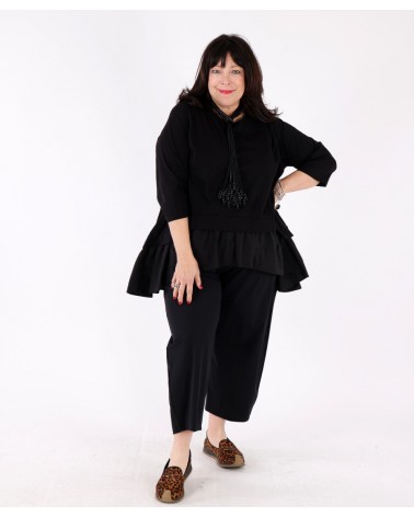 Flowy oversized top with layered ruffle hem Black – Tirelli