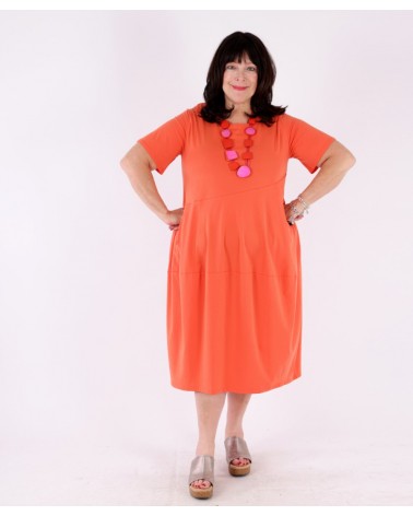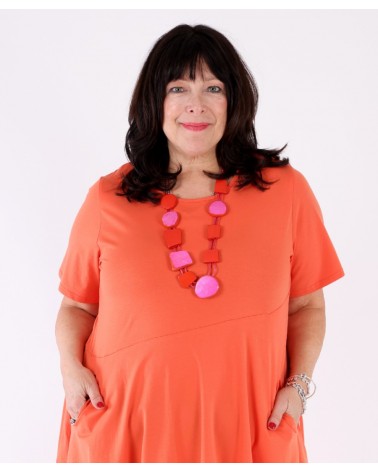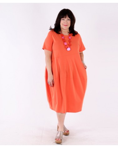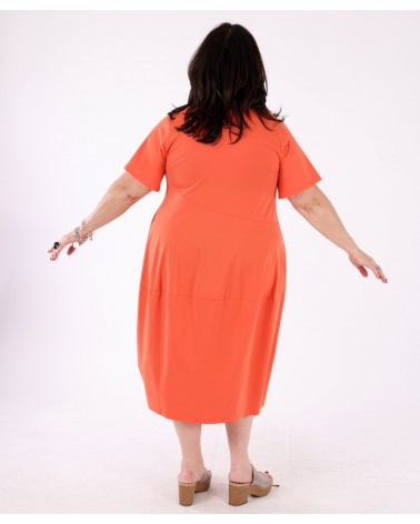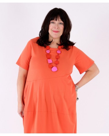 Oversized short sleeve dress with pockets Orange – Tirelli