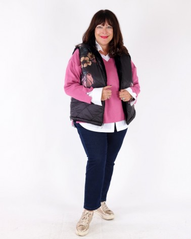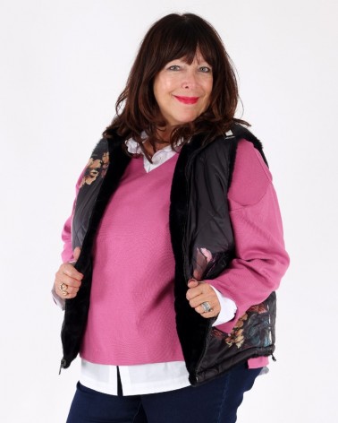 Gilet réversible imprimé matelassé et fausse fourrure Noir - Charlie B
