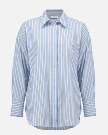 Confectionnée en Tencel léger, cette blouse tissée à rayures présente une silhouette boxy et une patte de boutonnage cachée. Des détails thermocollés sur toute la surface apportent une touche unique à cette pièce décontractée et non doublée.