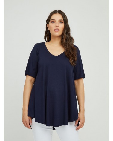 Top basique à ourlet arrondi marine - Mat