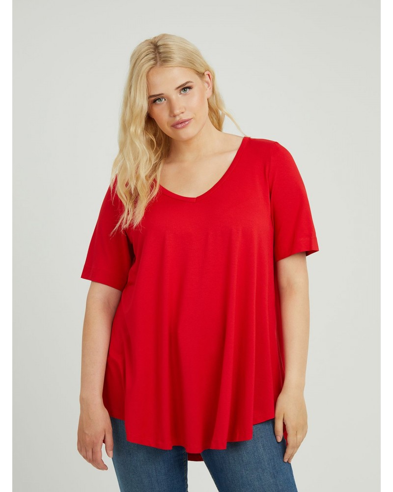 Top basique à ourlet arrondi rouge - Mat