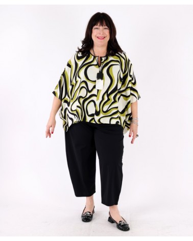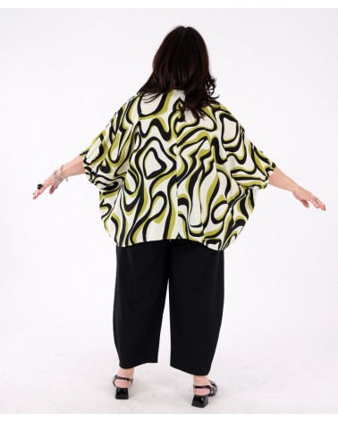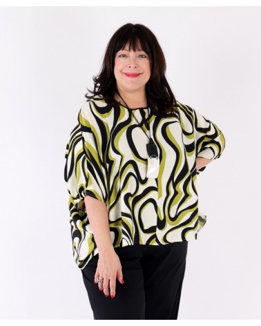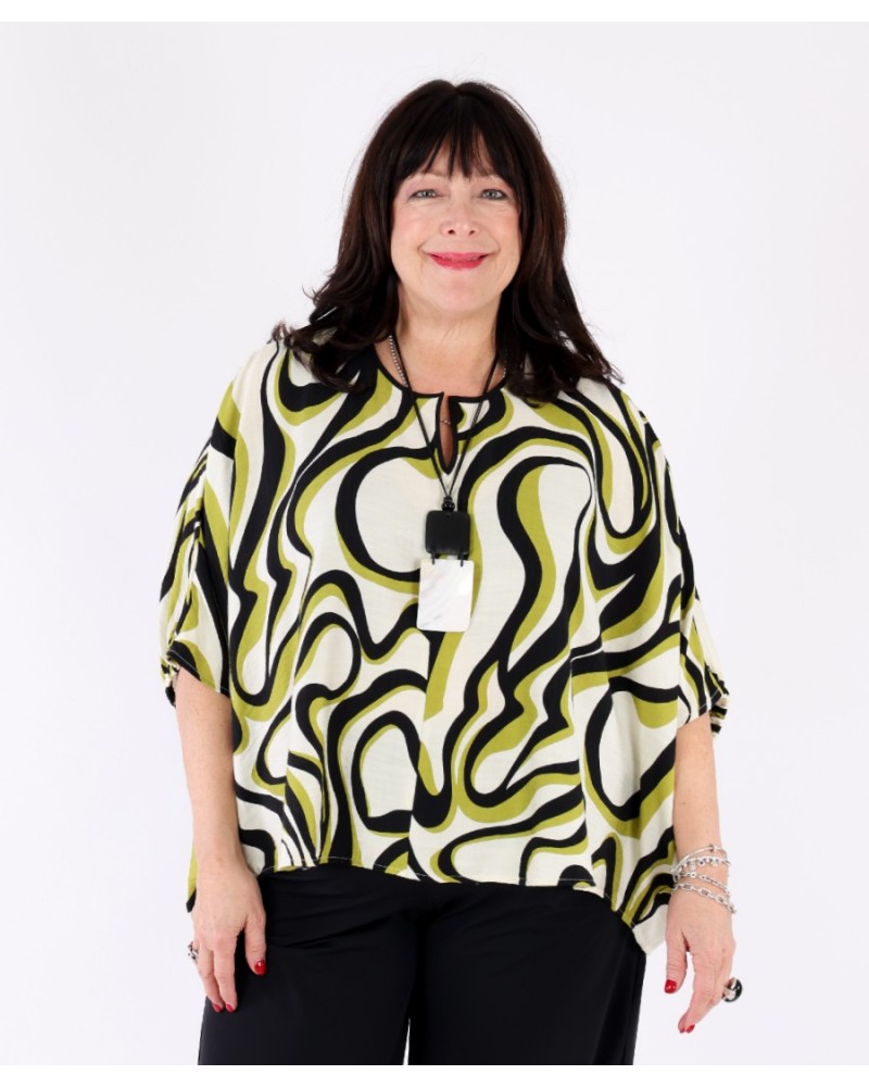 Tunique fluide col V imprimé abstrait Vert Matcha et Noir – Tirelli