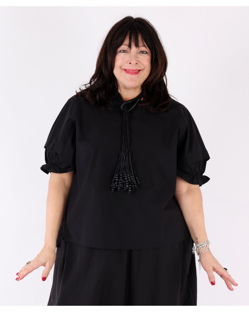Haut décontracté chic manches froncées Noir – Tirelli
